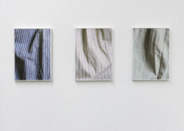 Triptychon aus Fotografien von gemusterten Textilien. Tintenstrahldruck auf strukturiertem Papier. Jeweils 21 × 30 cm, im Aluminumrahmen, ohne Glas.