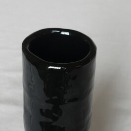 Small vase with shiny black glaze.